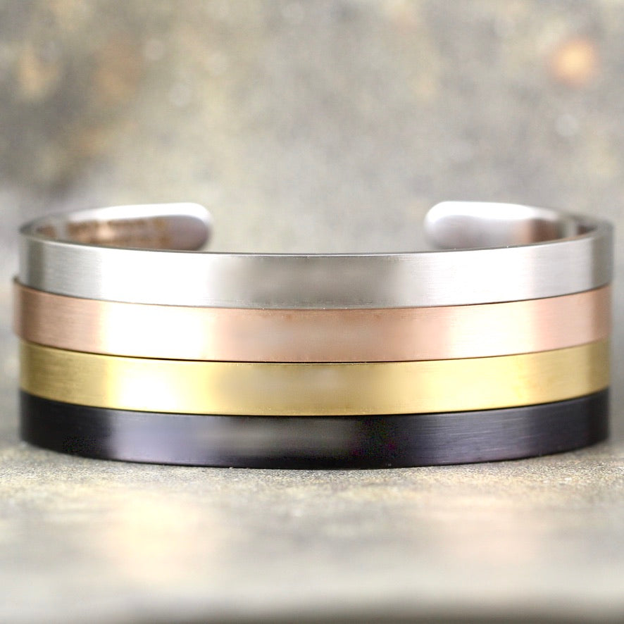 YOU ARE LOVED inspirational message Cuff Bracelet - Stainless Steel in your choice of rose, yellow, steel or black - Engraved Bracelet