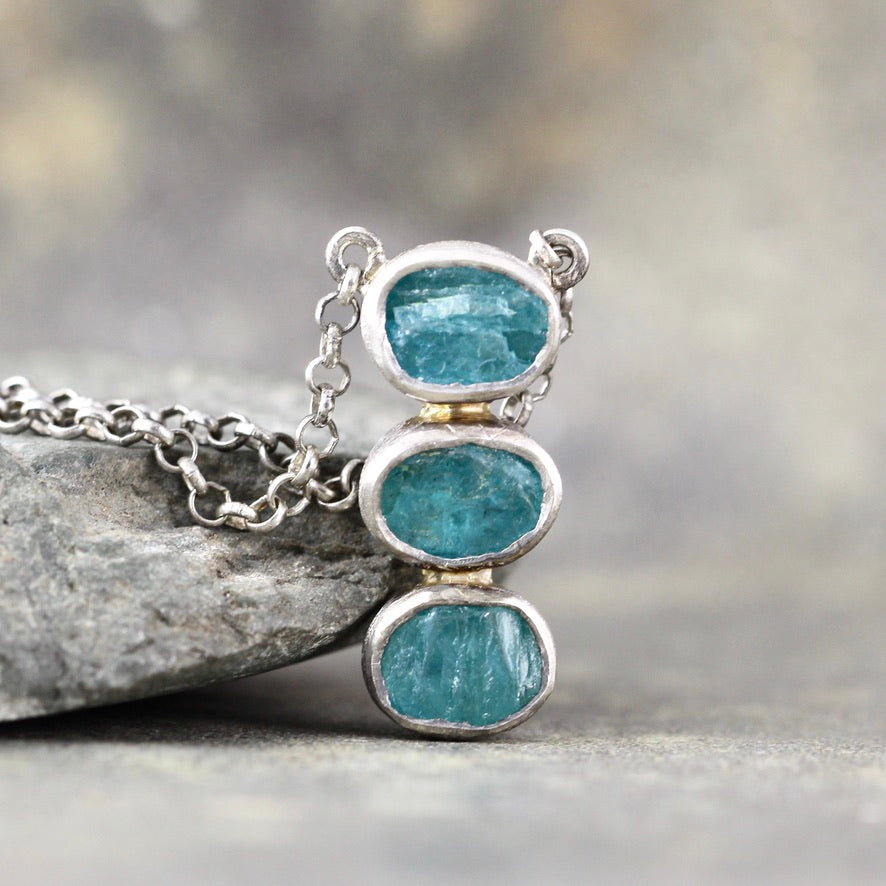 Blue Apatite Rough Gemstone Trio Pendant