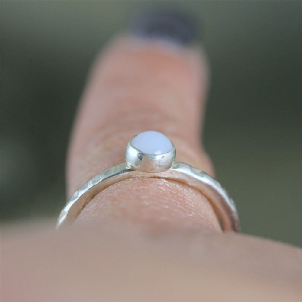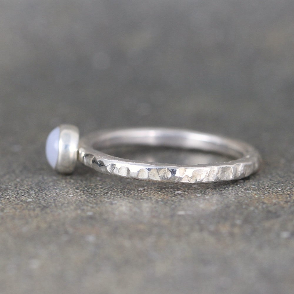 Blue Chalcedony Stacking Ring - Rustic Sterling Silver
