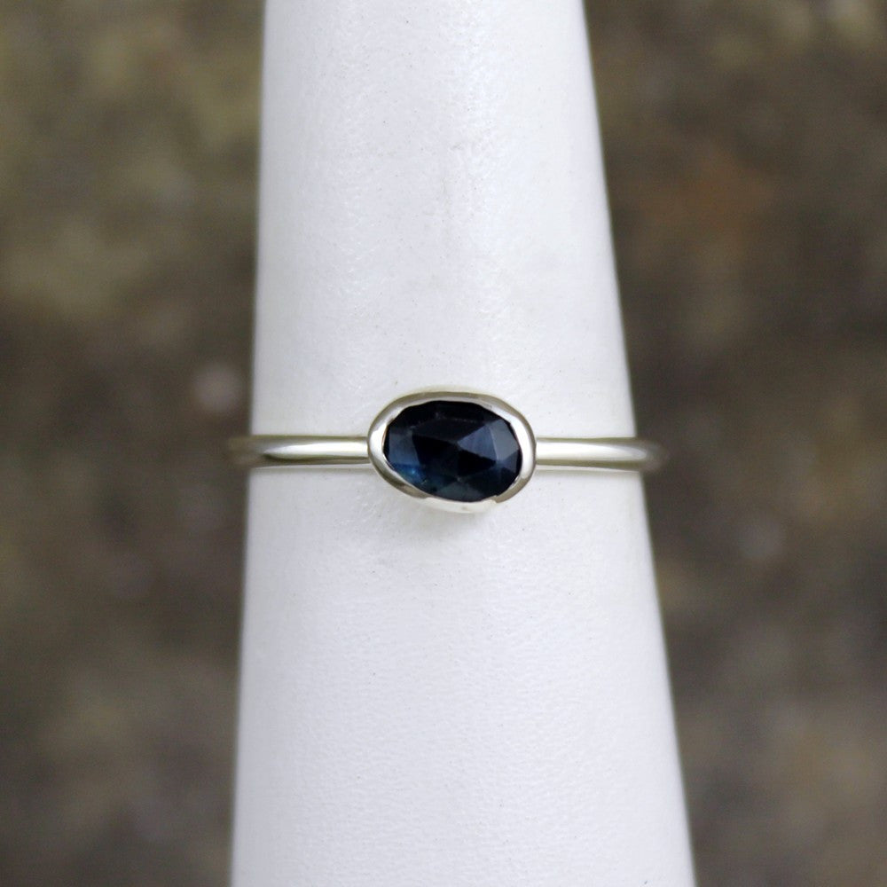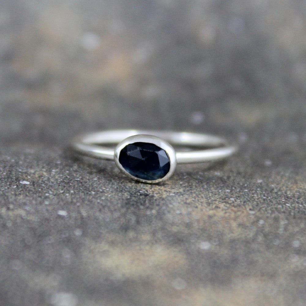 Blue Sapphire Ring - Rose Cut Sapphire Gemstone Stacking Rings