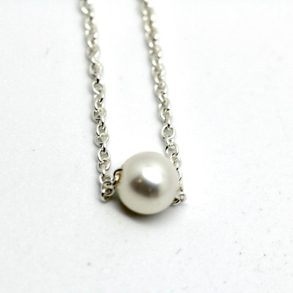 Elegant and classic, with a modern twist. Floating 6mm pearl on your choice of sterling silver, rose gold filled or yellow gold filled 18" chain.