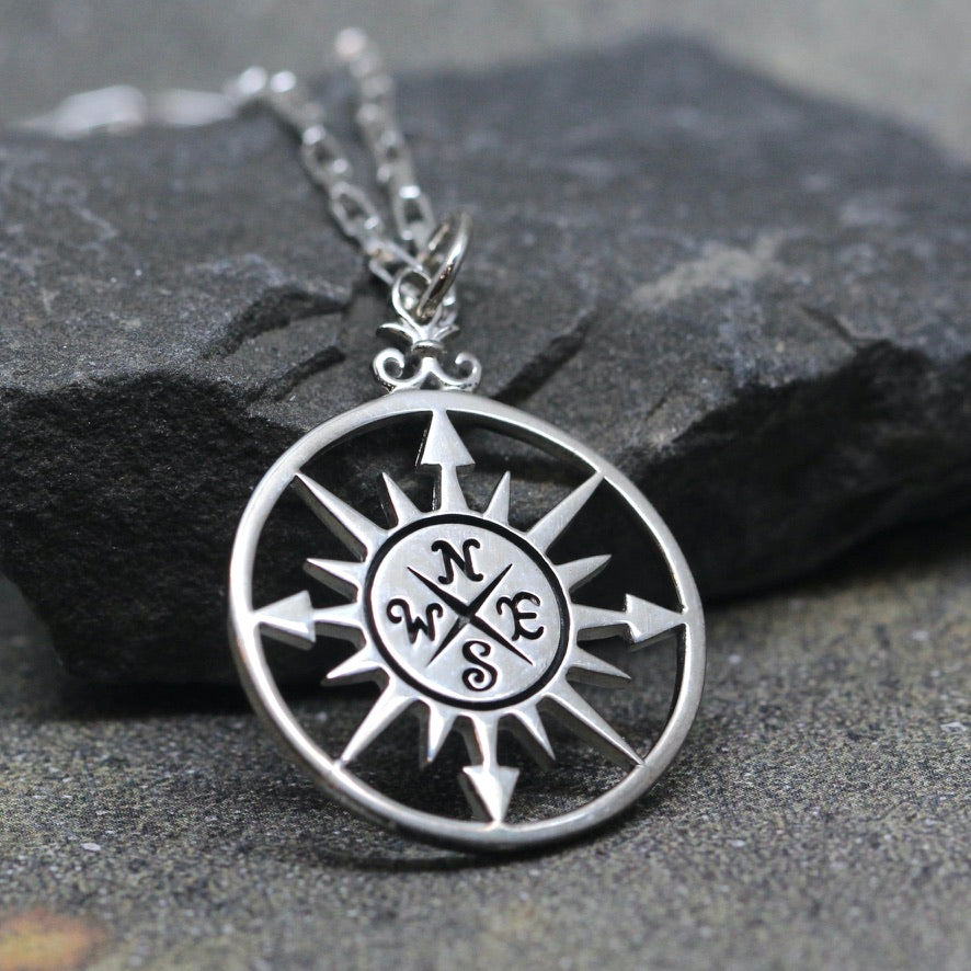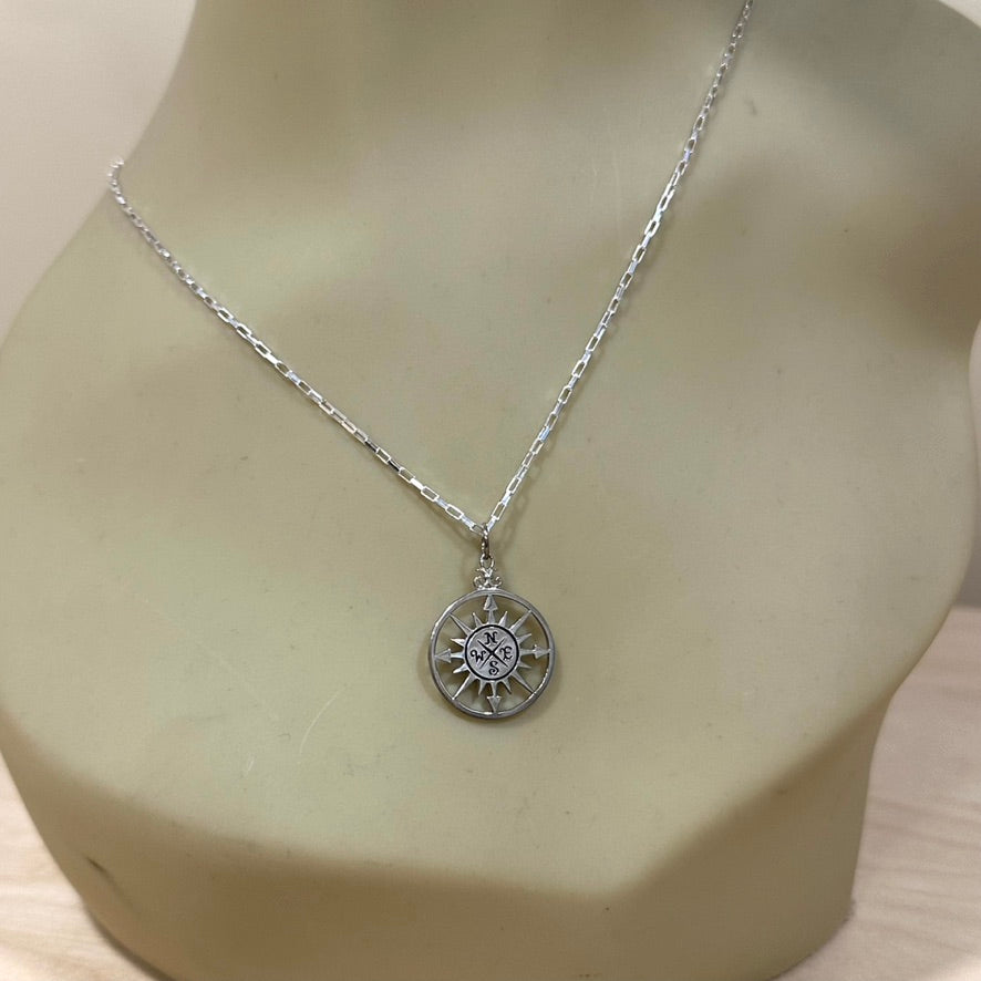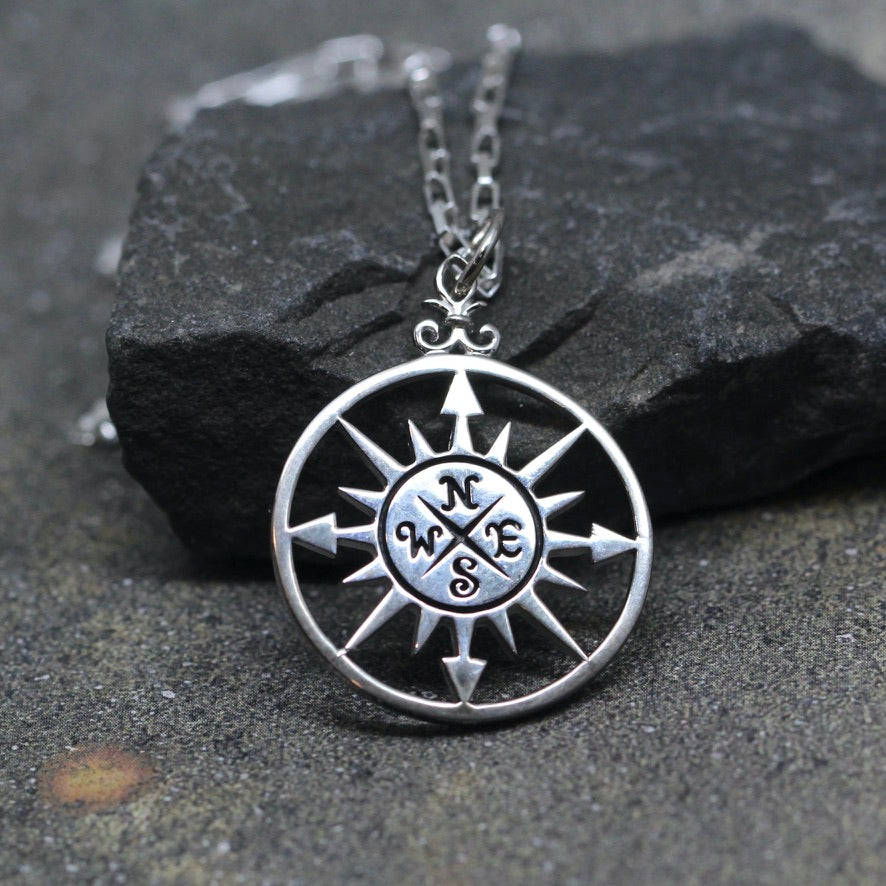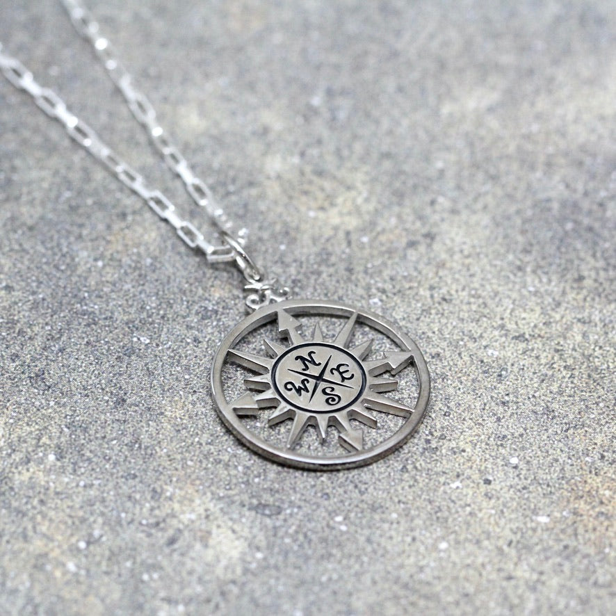 Found on maps since the 1300's, the Compass Rose was named due to it resembling petals of a rose blossom. Worn today as a reminder of home and guidance, finding your spiritual true north and as a token of safety and protection. This pendant is crafted in sterling silver and measures approximately 20mm in diameter. Included is a coordinating sterling silver chain approximately 20" in length. This style pendant is suitable for everyone!
