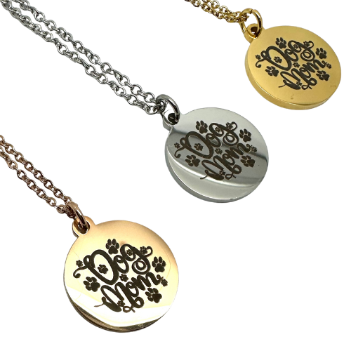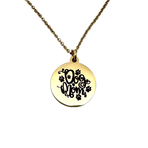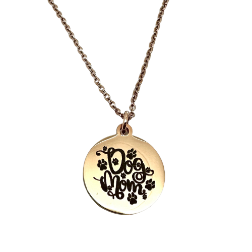 Dog Mom Pendant - Stainless Steel in your choice of Rose, Yellow or White
