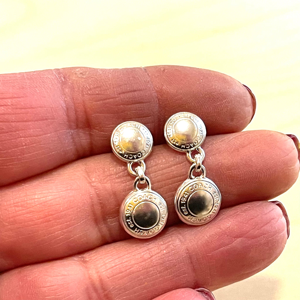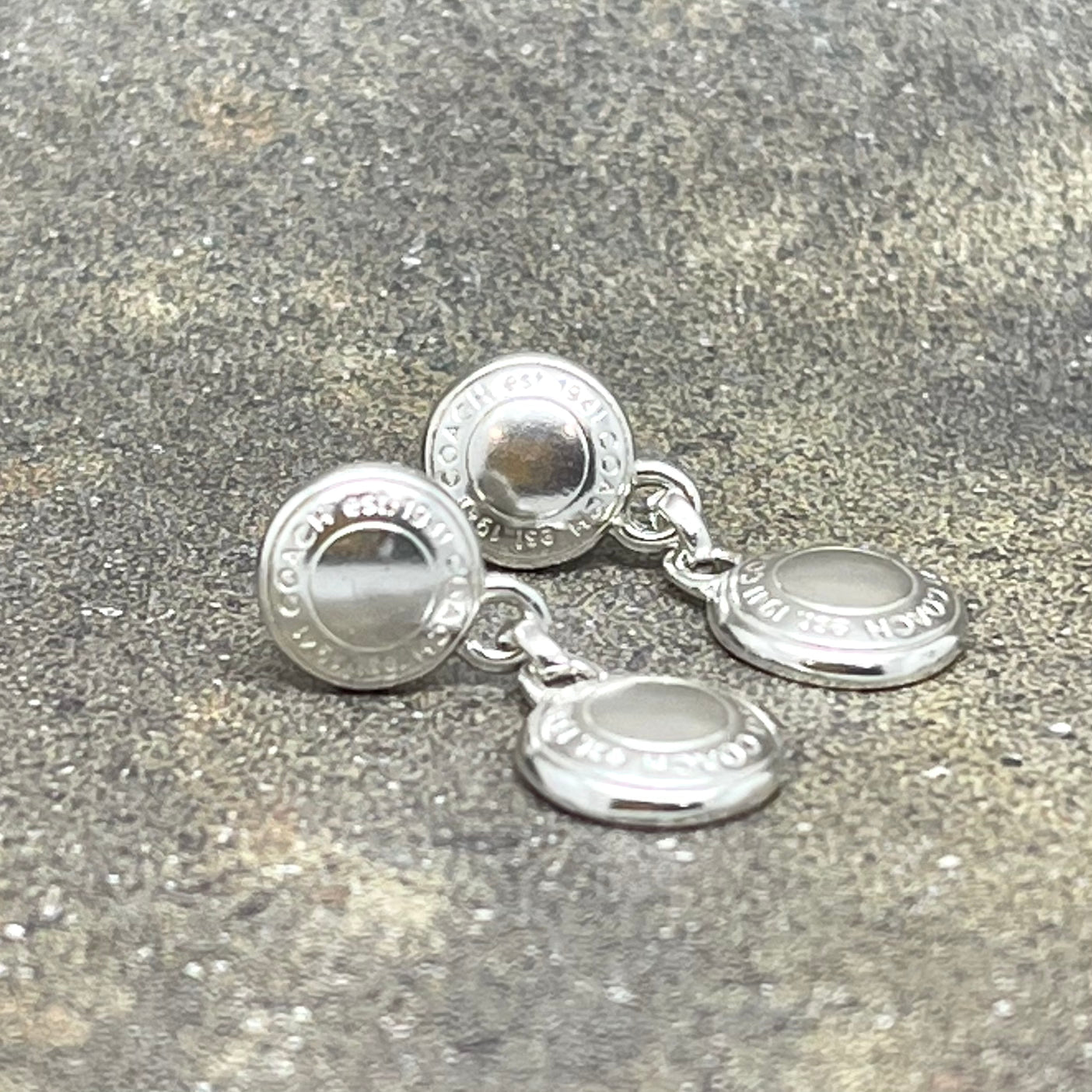 Fun, button style drop earrings made in sterling silver. These classic style drops measure approximately 23mm in length and approximately 8mm in width. These post style earrings come complete with butterfly style push on backs.