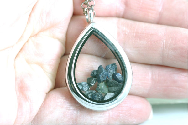 Glass Locket Raw Sapphire Pendant - Floating Gemstone Necklace
