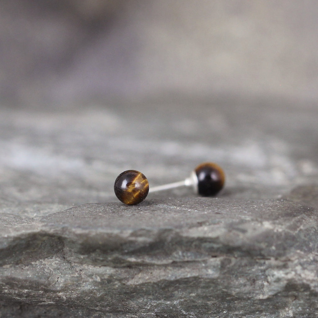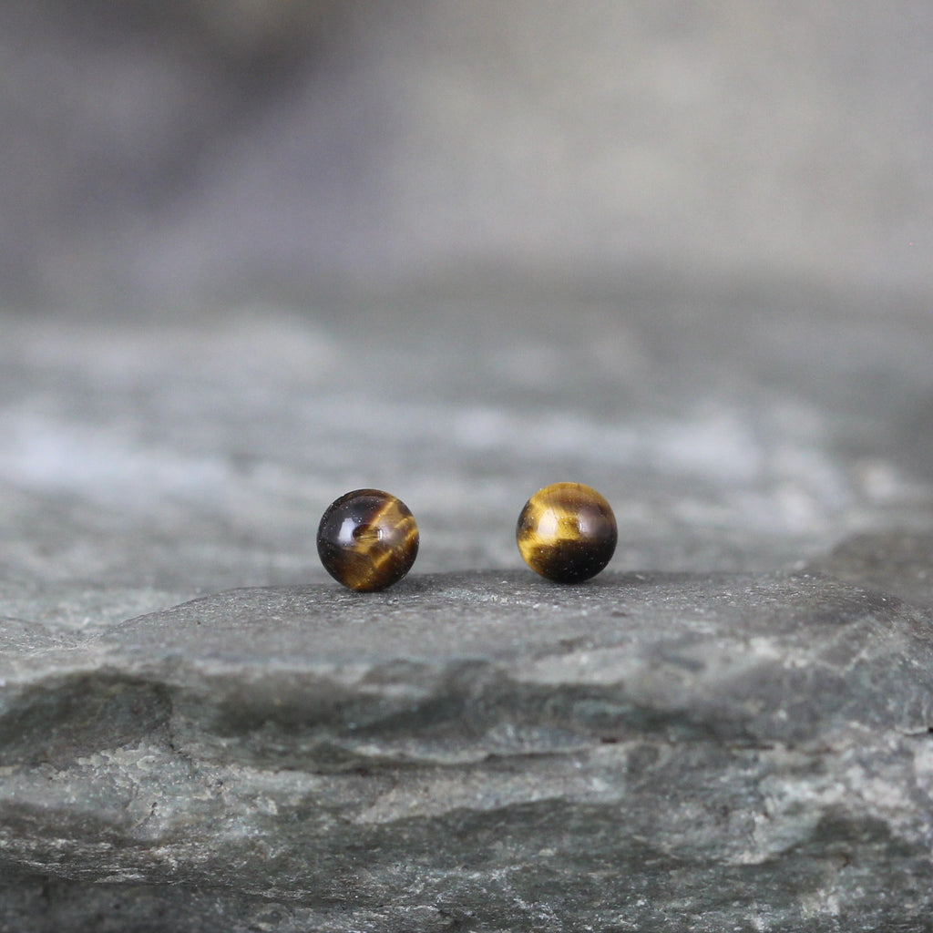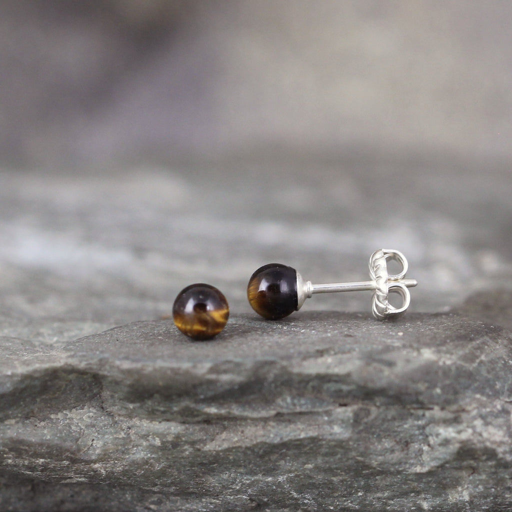 Golden Tiger Eye 4mm Earrings - Sterling Silver Stud Earring