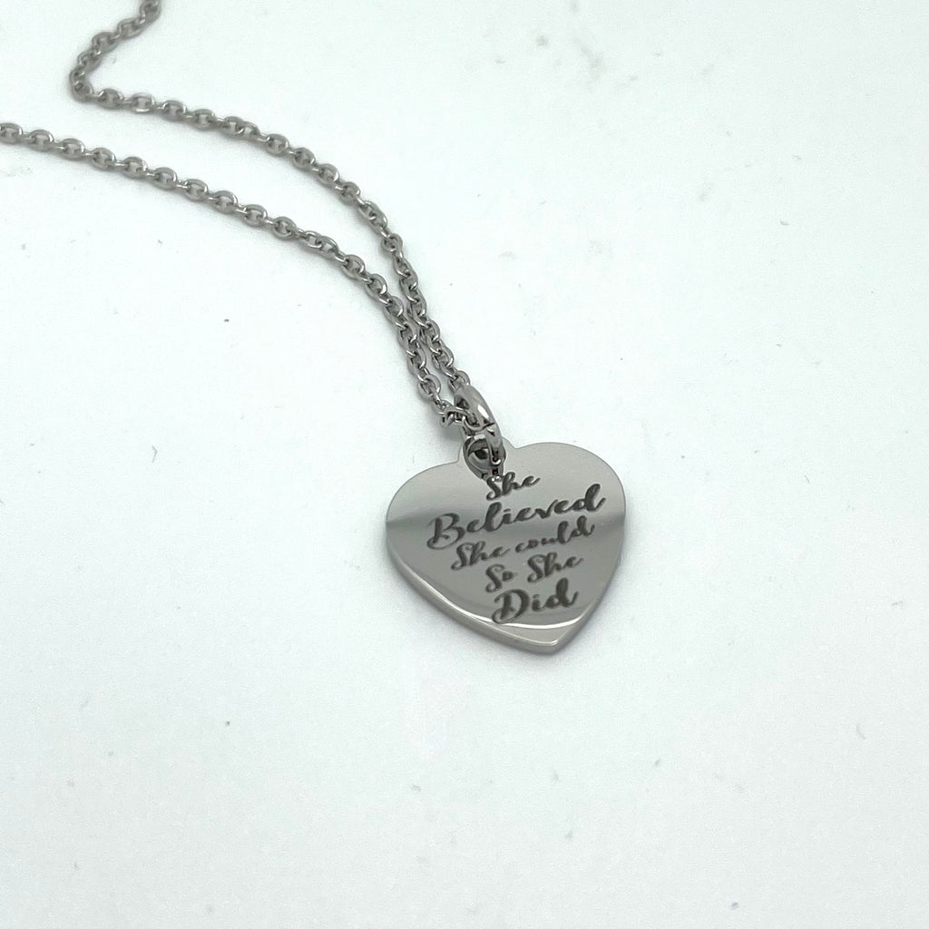 Heart Pendant 'She Believed She Could So She Did' - Stainless Steel in your choice of Rose, Yellow or White