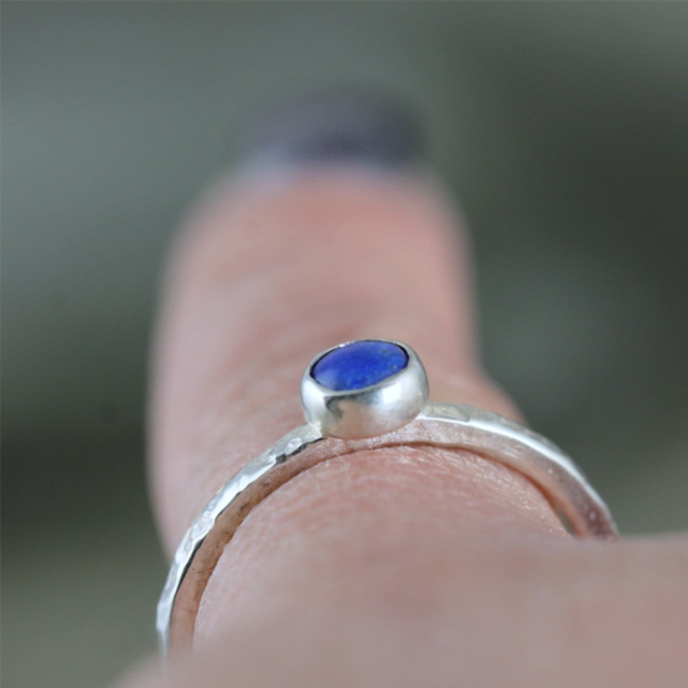 Lapis Stacking Ring - Rustic Sterling Silver - Blue Lapis Lazuli