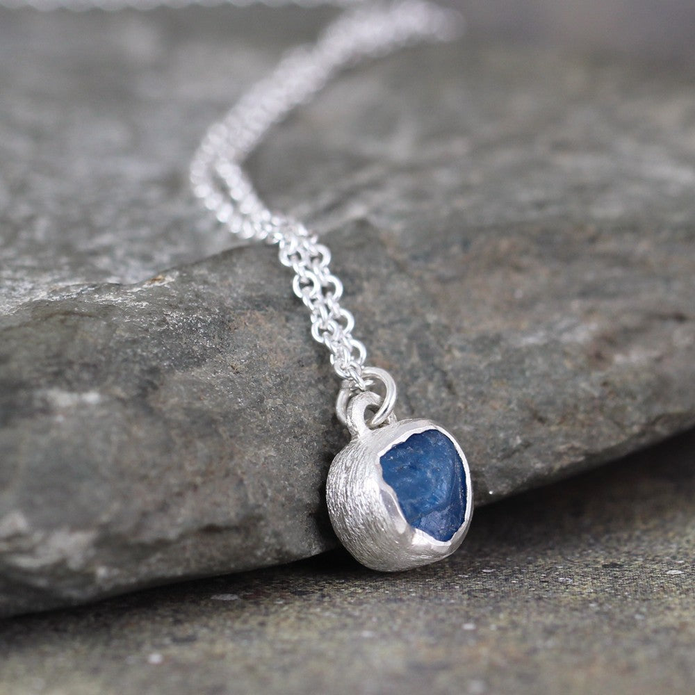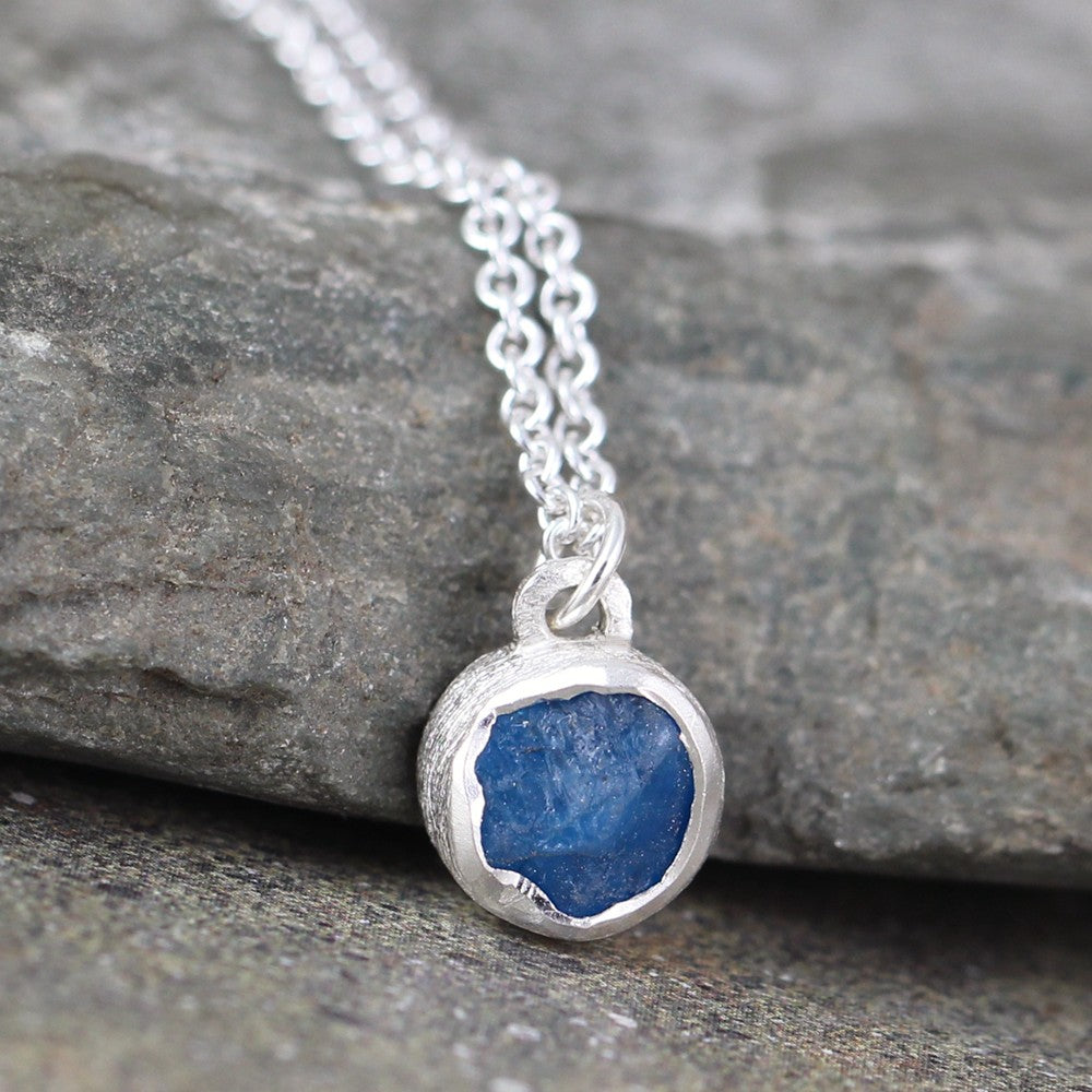 Neon Blue Apatite Necklace - Rustic Uncut Raw Blue Gemstone