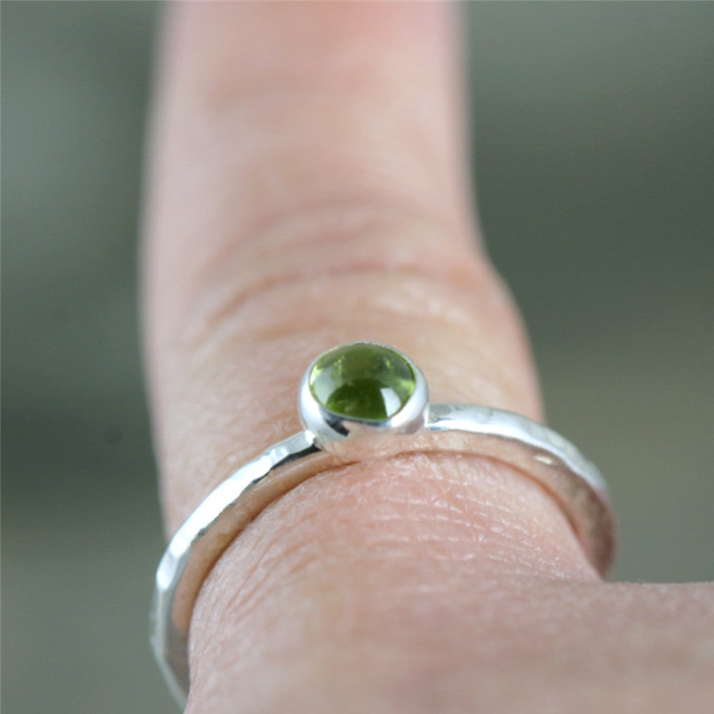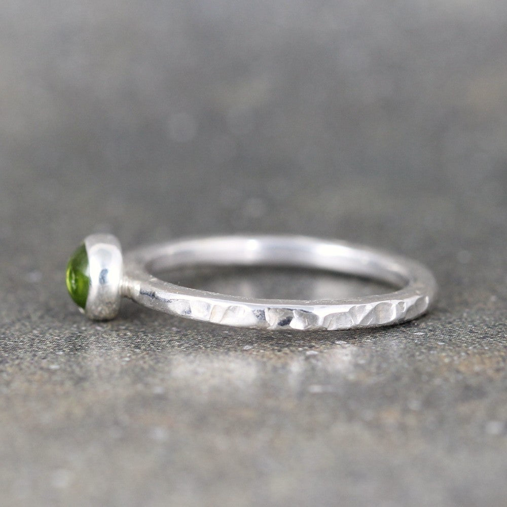 Peridot Stacking Ring - Rustic Sterling Silver - August Birthstone Ring