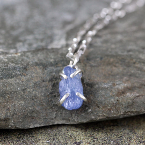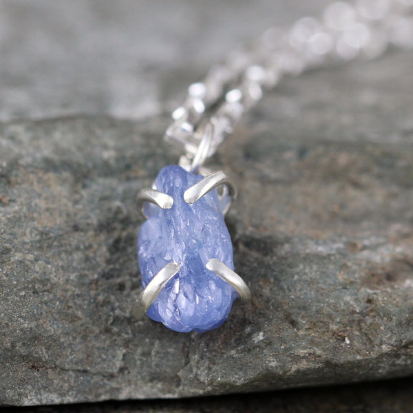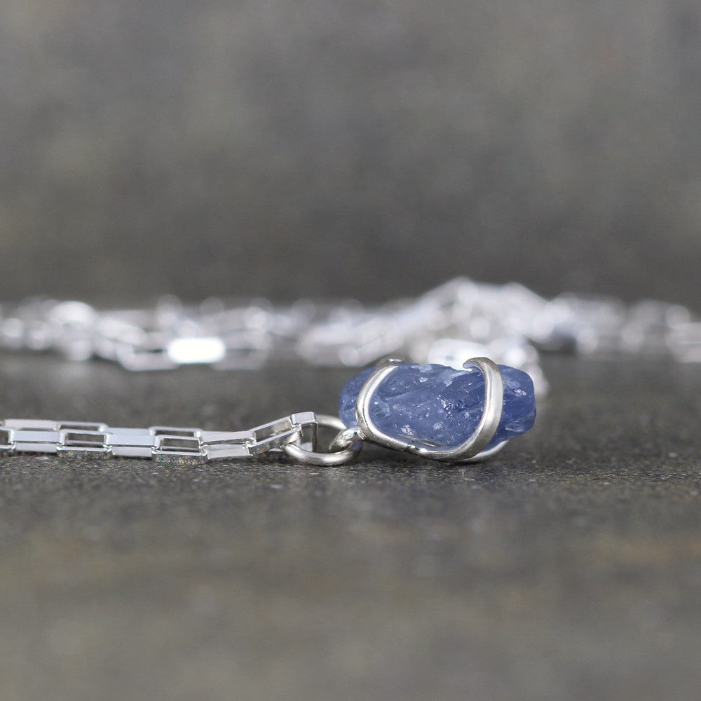 Rough Sapphire Necklace - Raw Uncut Denim Blue Sapphire Pendant