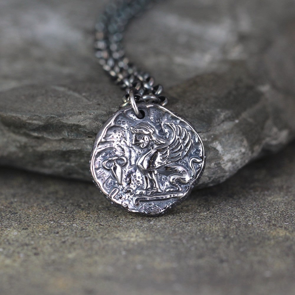 Sphinx Pendant - Mythological Sphinx Coin Necklace - Sterling Silver