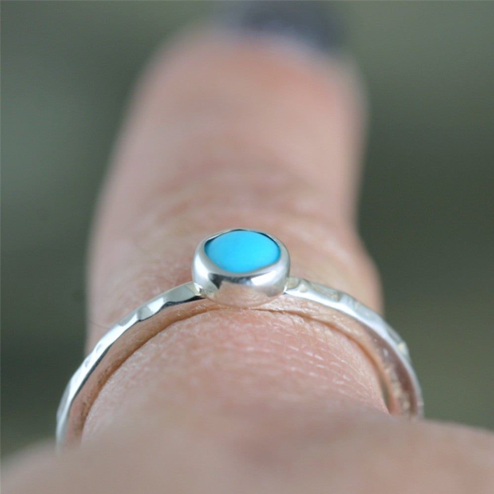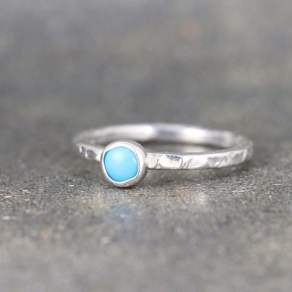 Turquoise Stacking Ring - Rustic Sterling Silver - December Birthstone Ring