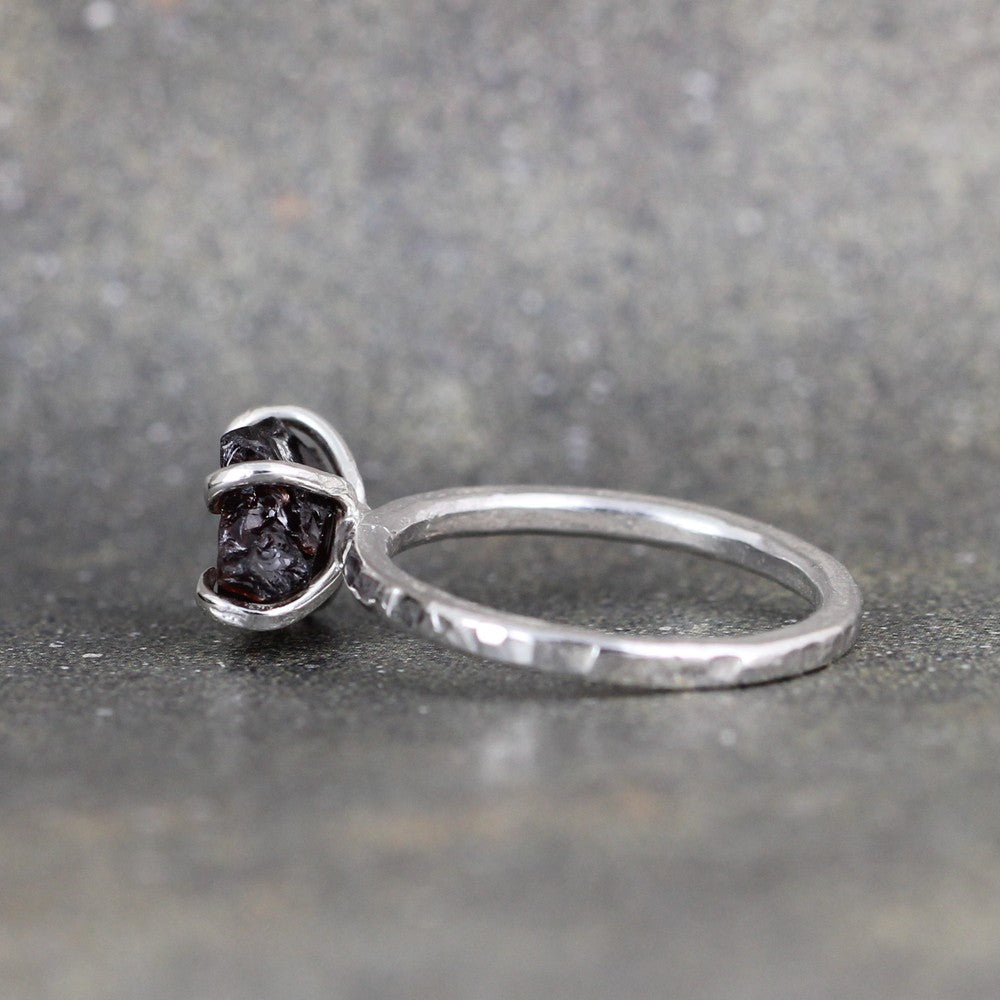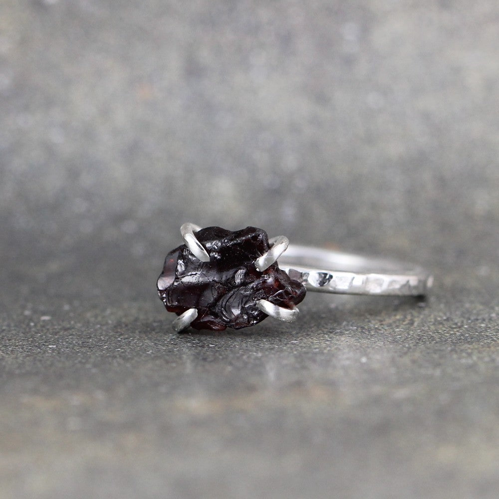 Uncut Raw Garnet Stacking Ring - Rustic Sterling Silver - January Birthstone Ring